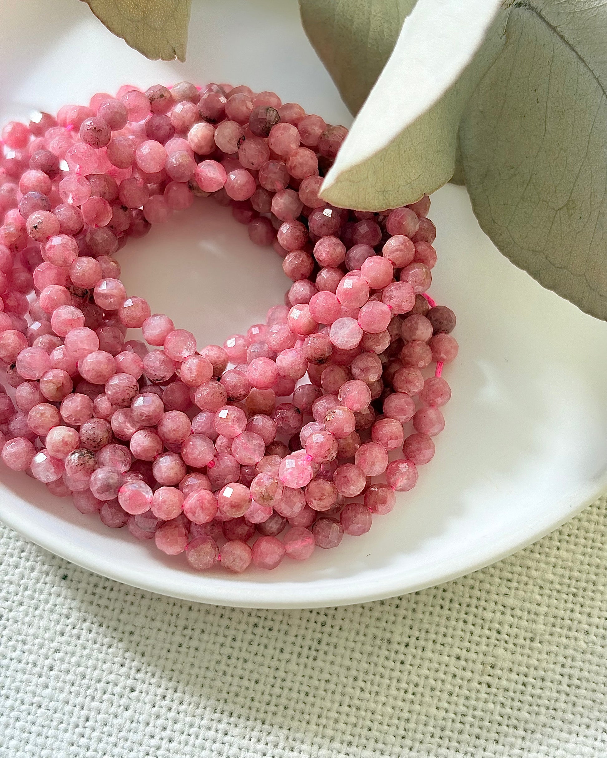 Pink Rhodonite in Quartz 3.8mm Natural Gemstone Crystal Beads